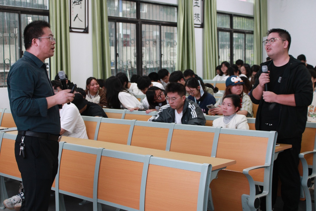 交流环节中,与会师生围绕报告内容踊跃提问,就合成方法的应用前景、学科资源整合、公司产品机制等议题与马教授展开深入讨论,现场气氛热烈。