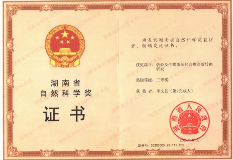 5)湖南省教育厅重点项目:新型席夫碱类稀土配合物的合成、结构及其在催化环酯开环聚合中的研究,19A0682020-2022年。