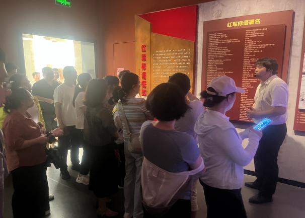 活动第二站来到了炎陵县红军标语博物馆炎陵县红军标语博物馆为全国首家集中保护展示红军标语的专题博物馆,设有“红色印记”6个基本陈列室,陈列1927年至1938年间的863件(套)红军标语藏品,涵盖井冈山根据地及湘赣根据地革命时期标语。红军标语是井冈山根据地和湘赣根据地革命斗争历史的缩影。红军标语历经半个多世纪的硝烟风雨,有的在书写后不久便被更换或覆盖,有的标语载体被剥蚀损毁或拆除,遗存的只是极少的一部分。这些遗存的红军标语具有署名单位多、时间跨度长、书写形式多、宣传对象广等特点。其内容既宣示了革命的最终目标,又结合了工农群众的切身利益;既有普遍的指导意义,又有明显的地方特点;既有强烈的政治性,又有质朴的艺术美,是中国革命斗争的珍贵信史、中国红色文化的重要组成部分。步入展厅,党员们立刻被形式多样的红色印记所震撼——墙壁上刷写的“三大纪律六项注意”、“红军是工农的军队”、“打土豪,分田地”等口号标语,字字迸发着革命的炽热力量。全体党员在讲解员的引导下,通过观看标语和聆听讲解,党员们认真了解了毛泽东、朱德等老一辈无产阶级革命家在炎陵开展的连队建党、插牌分田等一系列首创性革命实践活动,感受到了工农红军和根据地群众齐心协力、革命到底的坚定信念。
