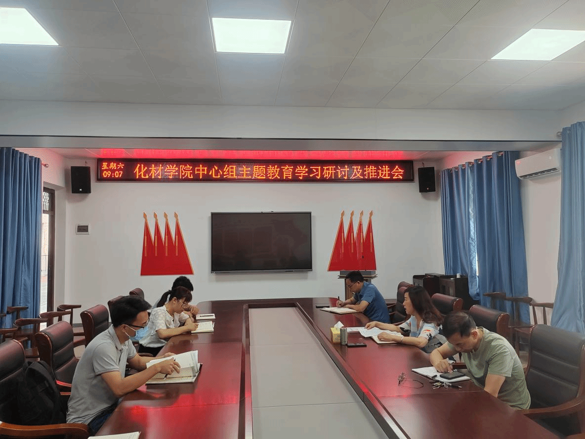 7月8日,化材公司党总支书记刘梦琴主持召开中心组主题教育学习研讨及推进会,通报前一阶段公司开展情况的成绩和差距,研究部署下阶段主要工作任务。经理许志锋,中心组成员和三个支部书记等出席会议。
