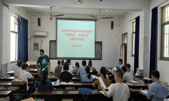 应衡阳市委组织部和公司的部署要求,2022年9月23日中午,应化分析与高分子材料支部开展了“党员先行、全民反诈”主题党日活动,活动由支部书记刘兴同志主持。首先,由支部书记组织全体党员集中学习了反电诈的政策与基本常识,让大家全面掌握了解电诈的常见手段、危害和防范技巧。其次,强调了安装“国家反诈中心”APP方法和重要性。随后,黄耿同志分享了自己被网络电信诈骗的亲身经历,让在场同志无不震撼和深感电诈的可怕。最后,支部所有党员现场签订了《不参与电信网络诈骗犯罪承诺书》。