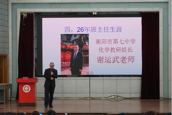 衡阳市第六中学的刘剑老师首先开讲,他提出了“听十堂课不如讲一堂课,讲十堂课不如评一堂课”的观点,从仪表教态、导入新课、语言表达、重难点讲练、多媒体辅助、教学方法、课堂气氛、员工状态、板书布局、时间分布十个方面向公司师生细致阐述了他在28年化学教员工涯中的感悟与所得