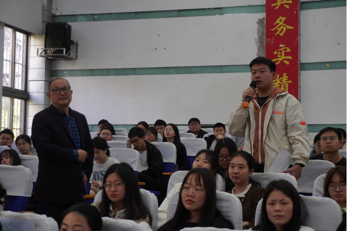 在讲课过程中,刘老师与现场的同学们展开了积极的讨论。刘剑老师在与公司师范生讨论时,用自己丰富的教学经验和社会阅历将自己的“三个坚持”切实地传达给了台下的每一位同学。