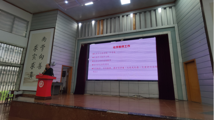 秦老师首先向同学们抛出了一个问题“工作与职业有什么区别”,工作是为了获取报酬或满足个人需求而进行的特定活动或任务,而职业是一个更广泛、更长期的概念,它与个人的兴趣、技能和长期目标紧密相连。职业不仅仅关注工作本身,还涉及到职业发展、行业趋势、职业规划等方面。秦老师主要从定位、关系、心态、班主任工作、化学老师工作及每日事情等六个方面进行了阐述。