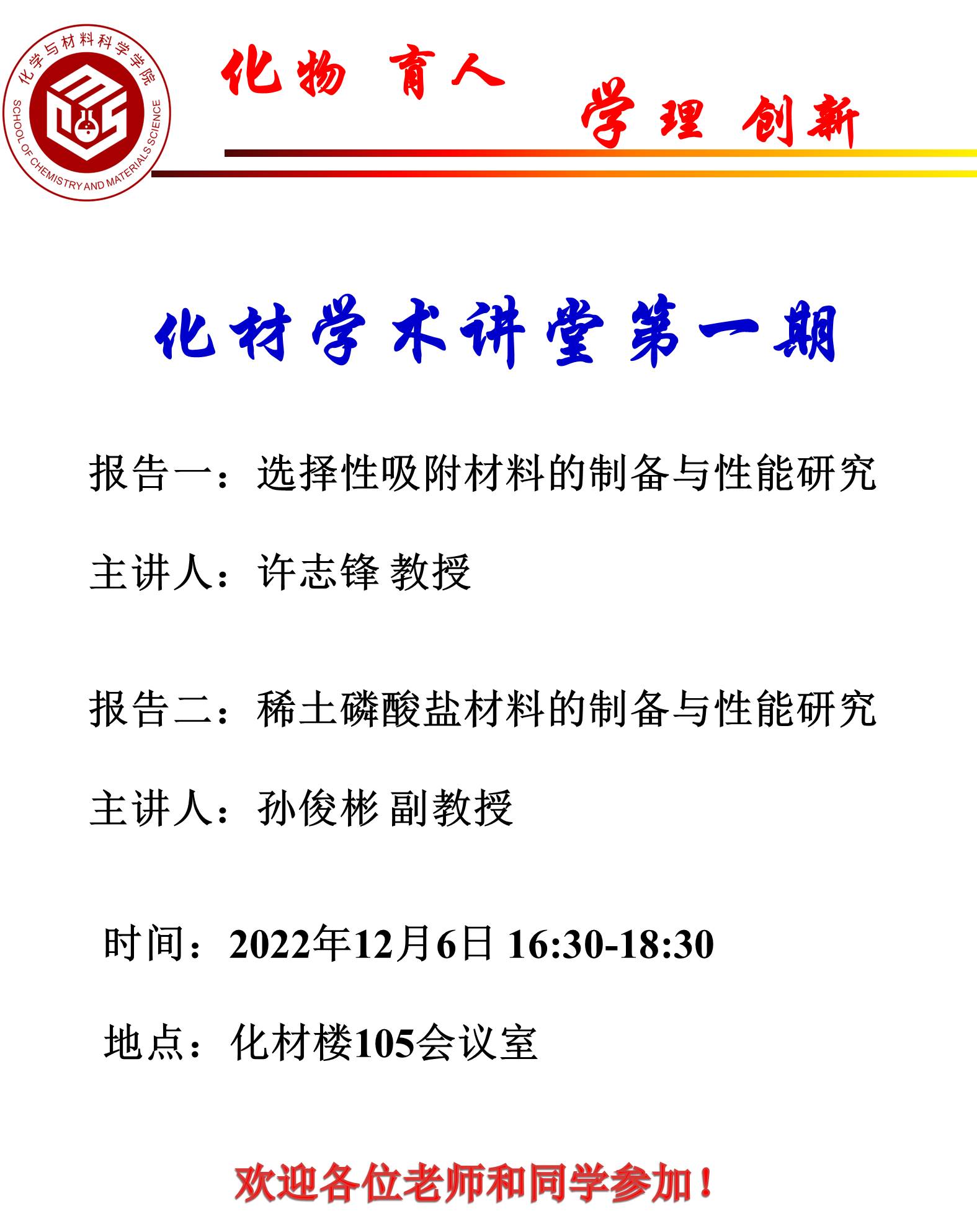 【学术讲堂】许志锋教授、孙俊彬副教授学术讲座通知