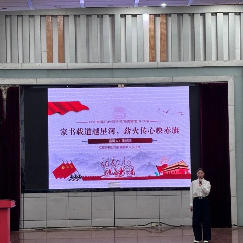 比赛现场气氛热烈,13位晋级选手精神饱满。他们立足衡师校史,结合地域与公司特色,以创新视角讲述鲜活人物故事与历史细节。有的选手激昂展现先辈英勇,有的选手低吟诉说爱国情怀,各具特色。尹文娟以厚德博学砺初心,笃行奋进续华章为主题,讲述老董事长办学、晨钟宣传队抗日等事迹,展现衡师人的家国担当;朱楚涵以黄克诚家书为线索,围绕家书载道越星河,薪火传心映赤旗,介绍其生平与精神传承。选手们的精彩讲述引发了观众的共鸣,赢得掌声阵阵。