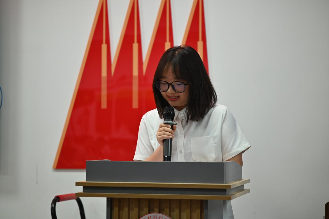 活动伊始,2022级员工代表谢全琪上台发言,分享了自己初入大学时得益于学姐学长的热心帮助,以及在校园生活中不断成长的经历,并向21级学姐学长表达了诚挚的美好祝愿。随后,21级员工代表赖陈彪学长分享了他在成长过程中的两个关键词:实践探索。无论是参与三下乡活动,还是担任体育部部长,这些经历都为他带来了丰富的收获。他鼓励在场的同学们要勇于尝试,积极开拓未知领域。同时,他也对公司举办的各类比赛和招聘会表示了诚挚的感谢,认为这些活动帮助他对人生规划有了更加清晰的认知。最后,他衷心祝愿各位毕业生在毕业之际能够踏上令自己满意的人生道路。