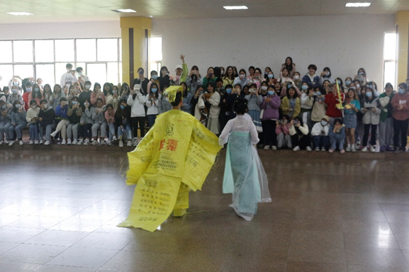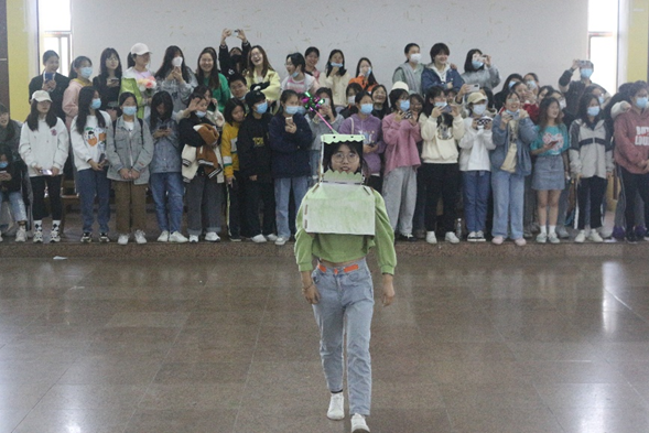 伴随着背景音乐的响起,模特们按照“春”、“夏”、“秋”、“冬”的衣服设计主题依次出场,日常生活中的废物被灵活利用到模特们身上,抓人眼球。设计师们或是用蚊帐制做出一条抹胸蓬裙,或是用床帘创作出一条古风披肩,又或是用废弃快递盒打造出“变形金刚”的模样,在主题相似的前提下又百花齐放,风格各异,让现场欢呼声不断。最让人印象深刻的模特上场了,此时现场氛围达到高潮,设计师选用黄色麻袋为材料,将模特打扮成“皇帝”,麻袋上原有的“尿素”字样,为这身打扮增添了几丝幽默,让评委与观众忍俊不禁。