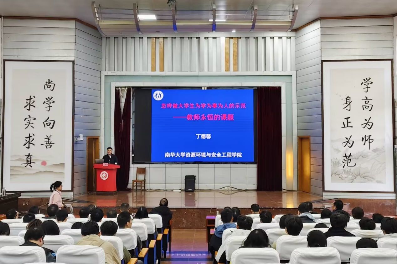 报告伊始,丁德馨教授开宗明义,指出“为学、为事、为人的示范”是新时代对教师提出的核心要求,也是每一位教育工作者需终身探索与实践的永恒命题。他结合数十年的教学科研与育人实践,从根本遵循、磨砺品质、胸怀祖国、放眼世界、严谨治学、与时俱进等多个维度,系统而深刻地阐述了如何成为员工为学、为事、为人的引路人。整场报告中,丁教授引经据典、案例生动,语言质朴而充满力量。他以深厚的学术修养、高尚的人格魅力以及对教育事业的无限热忱,深深打动了在场师生,现场反响热烈。
