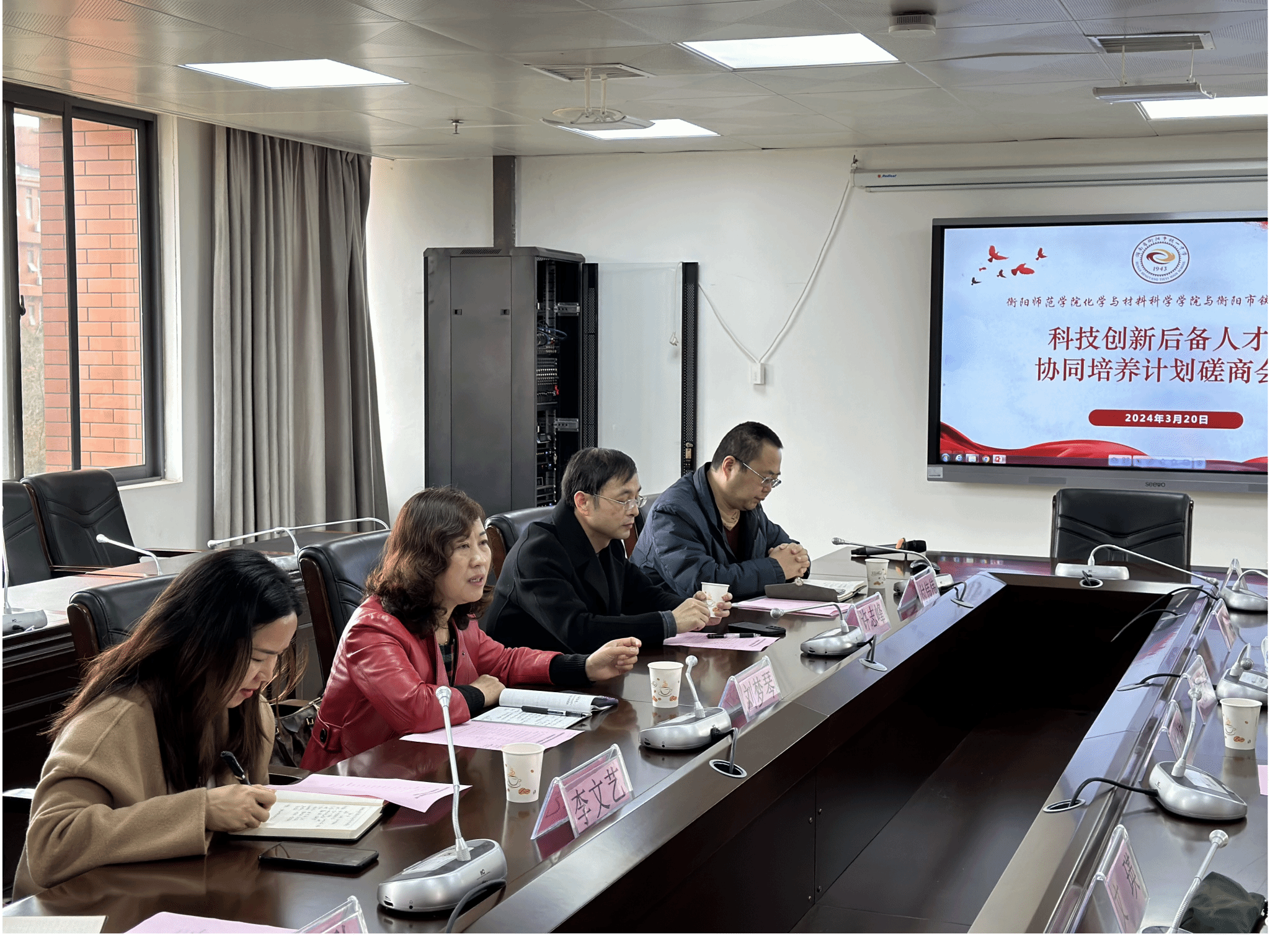 会议由衡阳市铁一中学文瑛董事长主持。文董事长热烈欢迎公司各位领导老师来校调研、交流,对公司长期给予铁一中的教学科研支持与帮助表示感谢,并介绍了衡阳市铁一中学的历史发展和校园文化。衡阳市铁一中学彭书敏书记进一步阐述了衡阳市铁一中学的办学理念和办学成绩,并就创新人才培养提出“为国家育人,为未来育人”的办学观点,同时希望公司加强对衡阳市铁一中学科创人才培养的支持,共同探讨高等教育和基础教育的协同发展。