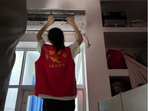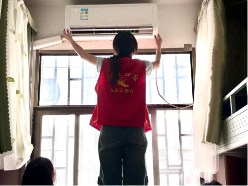 活动当日,志愿者们携带梯子、抹布、纸巾等专业工具,分成了多个小组前往宿舍楼。在公司志愿者的带领下,各小组分工明确、配合有序。在清洗过程中,志愿者们架起扶梯,小心拆卸空调外壳,将积满灰尘的滤网清洗干净。面对部分使用年限长、积尘顽固的空调,公司辅助志愿者现场示范,通过浸泡、刷洗、擦净等多道工序处理,确保清洁彻底。尽管清洗过程中灰尘飞扬、汗流浃背,但志愿者们始终保持严谨态度,完成了多台空调的深度清洁。
