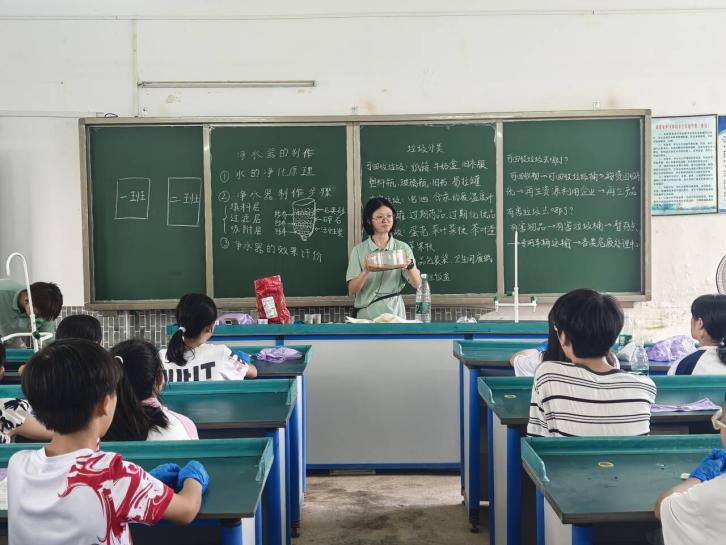 在衡南县近尾洲联合中心小学的教室里,“铜”心“碳”索科普队以“生活中的化学”为主要内容,课前十分钟,给孩子们讲科学家故事,让榜样的力量跨越时空,在幼小的心灵种下科技报国的种子。