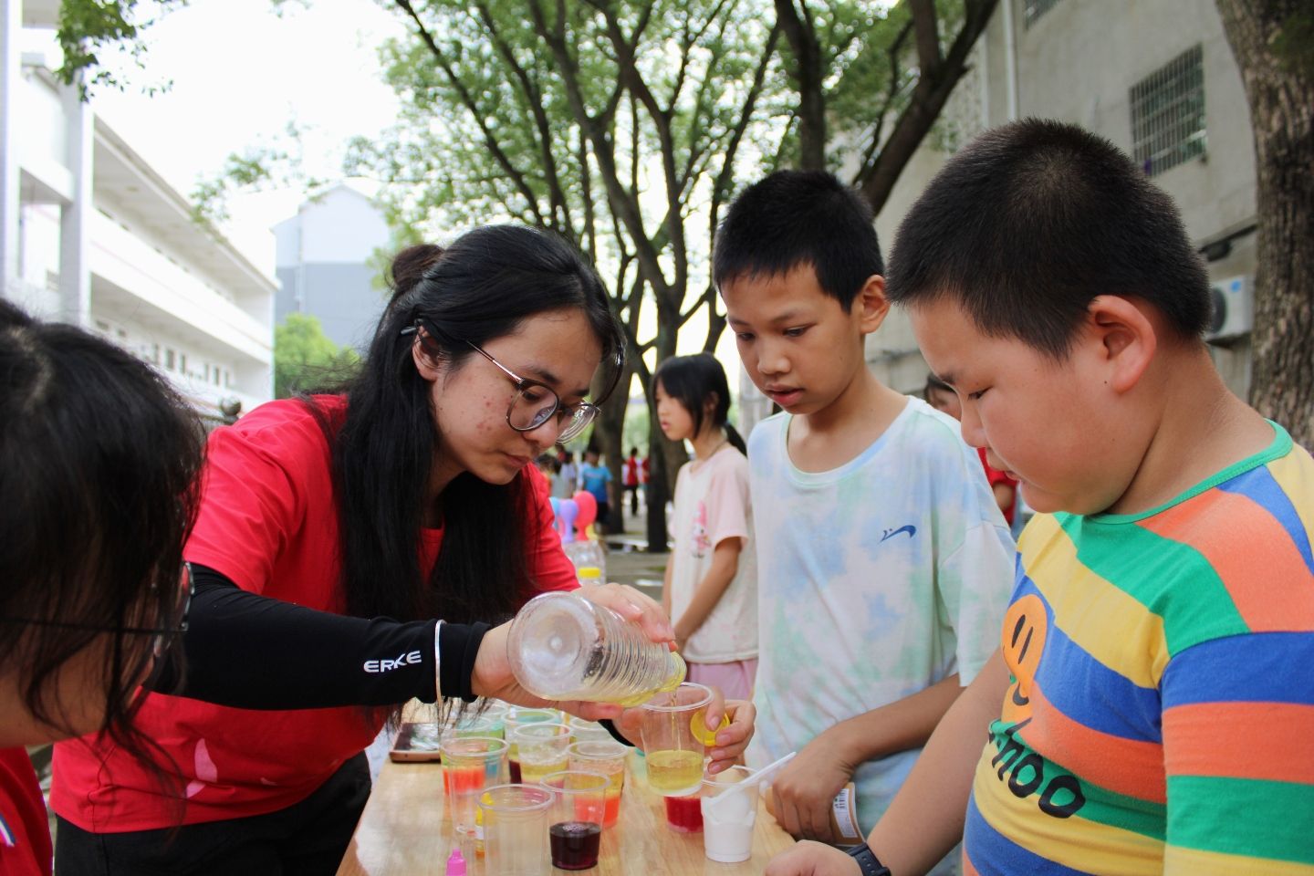 7月13日,伟德官方网站“铜”心“碳”索科普队在近尾洲联合公司中心小学举办了一场以“脑洞实验室,趣玩嘉年华”为主题的科普节,孩子们在沉浸式、互动性的科学体验活动中,走进了科学世界,一个个颜色艳丽、现象明显的小实验吸引了孩子们的积极参与。