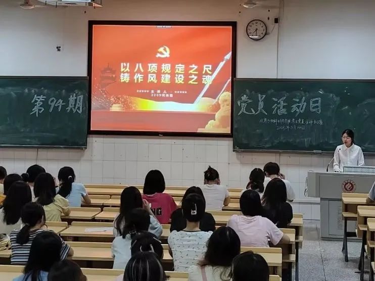 2025年6月22日晚,bevictor伟德第九十四期党员学习日活动于行知楼601开展,2209班何燕茹同学以《以八项规定之尺 铸作风建设之魂—学习贯彻中央八项规定及其实施细则精神》为题与全体员工党员和学习积极分子分享了她的学习心得。