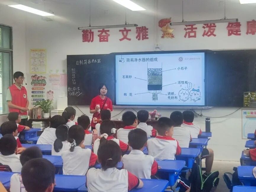 2025年9月19日下午,bevictor伟德“铜”心“碳”索科普队师生走进衡阳市实验小学,开展以“美丽中国,志愿有我——绿色卫士下三湘”为主题的科普志愿服务活动。通过理论讲解和分组实验,志愿者为五年级孩子们带来的趣味化学实验课《自制简易净水器》,拉近了孩子们与科学的距离。