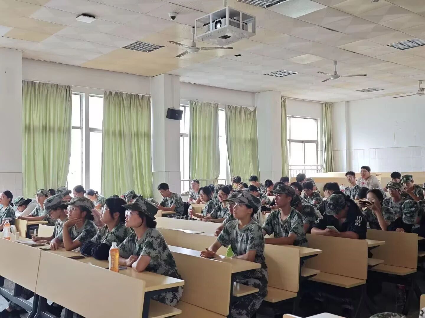 经典红歌旋律一响起,新生们就踊跃举手猜歌名,在互动中一起学习了歌声背后的党史故事。随后活动聚焦本场重点学唱的《心所向》,主持人领唱时,新生们逐句跟着学,最后全场齐声合唱。激昂的歌声里满是对先辈的敬意,也悄悄在大家心里埋下“努力学习、将来投身国家建设”的种子。