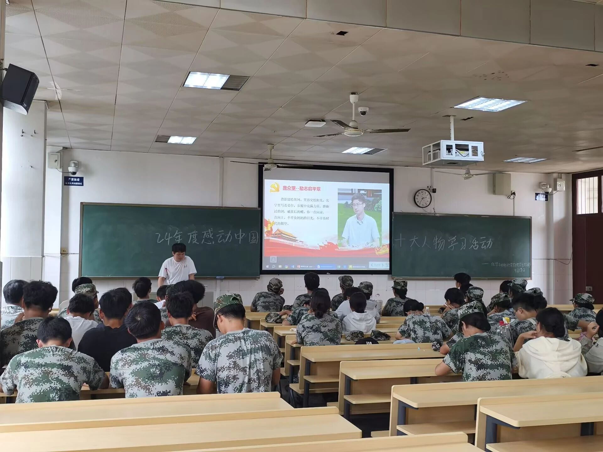 主讲人结合党员使命与实践感悟,带领新生学习《感动中国》十大人物事迹。宣讲时,主讲人深度阐释颁奖词,结合相关案例,配合纪实视频,生动呈现杰出代表人物的奉献精神。新生们深受感染,对社会主义核心价值观有了更直观的体会,纷纷表示要以榜样为镜,将奉献精神转化为日常学习生活的实际行动。