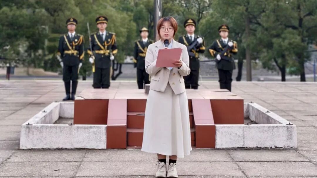 晨曦微露,柔和的光线洒满新世纪广场,同学们已整齐列队。教导队成员们身姿挺拔、眼神坚毅,迈着铿锵有力的步伐,护卫着国旗走向升旗台。国歌奏响,五星红旗冉冉升起,广场之上庄严的气氛悄然氤氲。这一刻,历史与未来交汇,红色基因的传承使命,落在每一位新时代青年的肩头。