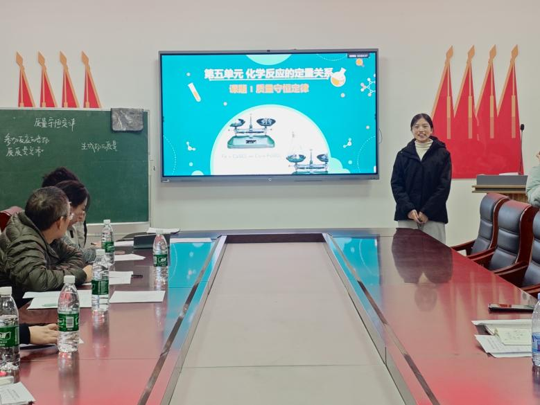 活动采用抽签的方式,随机抽选人员进行讲课。汇报现场,师范生们依次登台,王广军、申佳铃等十位同学围绕《水的组成》《质量守恒定律》《金属材料》《物质的量》等经典化学课题展开教学展示。申佳铃同学精心设计教学环节,以“狄仁杰的困惑”趣味提问引出《化学反应定量关系》,结合生活中的常见现象展开讲解,生动易懂。李俊华老师从PPT视频准备、时间把控两方面指出其现存问题,付伟伟副经理补充点评,既肯定她扎实的教学素养与基本功,也建议在授课中注入更多激情,让课堂更具感染力。