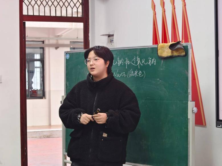 曾雨宏同学在《氧化钠与过氧化钠》一课中,以“深海供氧、火灾防毒面具”的生活场景切入,巧妙引出“氧气搬运工”——钠的两种氧化物,迅速激发员工探究兴趣。课堂节奏张弛有度,注重知识衔接与员工互动参与。在点评环节,获得评委老师的一致好评,付伟伟副经理称赞其授课时落落大方、面向听众,声音表达效果较好,展现了不错的教学仪态与表达基础,因汇报课时间有限,也指出曾雨宏同学在后续的教学中需优化内容取舍,聚焦核心知识点,打磨教学节奏与思维连贯性。
