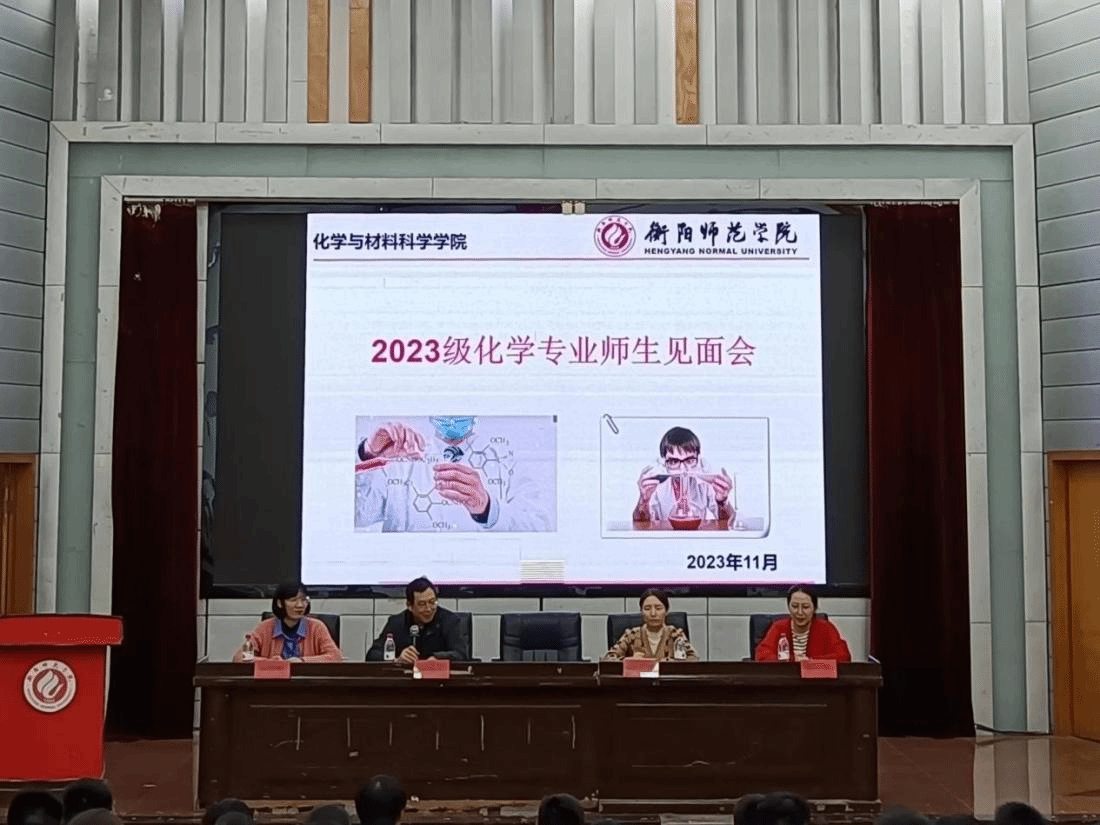 化学专业是公司历史最悠久的专业之一,2004年被评为公司首批重点建设专业,2006年被评为湖南省重点专业,2008年被确定为湖南省高等公司特色专业,2019年被评为湖南省一流本科建设专业。为使新生深入了解化学专业的人才培养目标、核心专业课程以及就业前景,鼓励员工学好专业知识,积极参加学科竞赛,提升师范生综合素质,为成为一名优秀的人民教师而奋斗,公司于2023年11月10日19:00在西校区模拟法庭开展2023级化学专业师生见面会。党总支副书记阳曼以及陈满生、崔莺、毛芳芳、钟青梅四位老师受邀参加大会,2023级全体化学专业新生现场聆听。