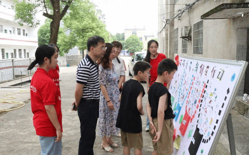 2023年7月17日,伟德官方网站校化学与材料科学公司党总支书记刘梦琴、经理许志锋、副书记阳曼一行来到衡南县近尾洲联合公司中心小学指导公司暑期“三下乡”社会实践活动,慰问“红星闪闪”科教团成员,指导老师唐升、钟彪陪同他们观看了团队实践活动成果汇报。