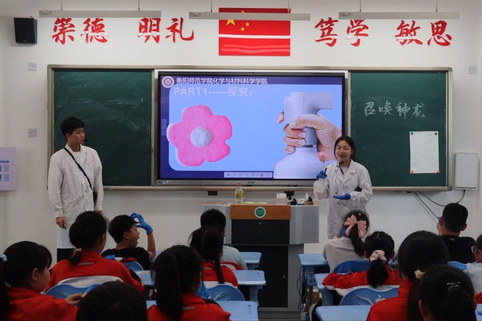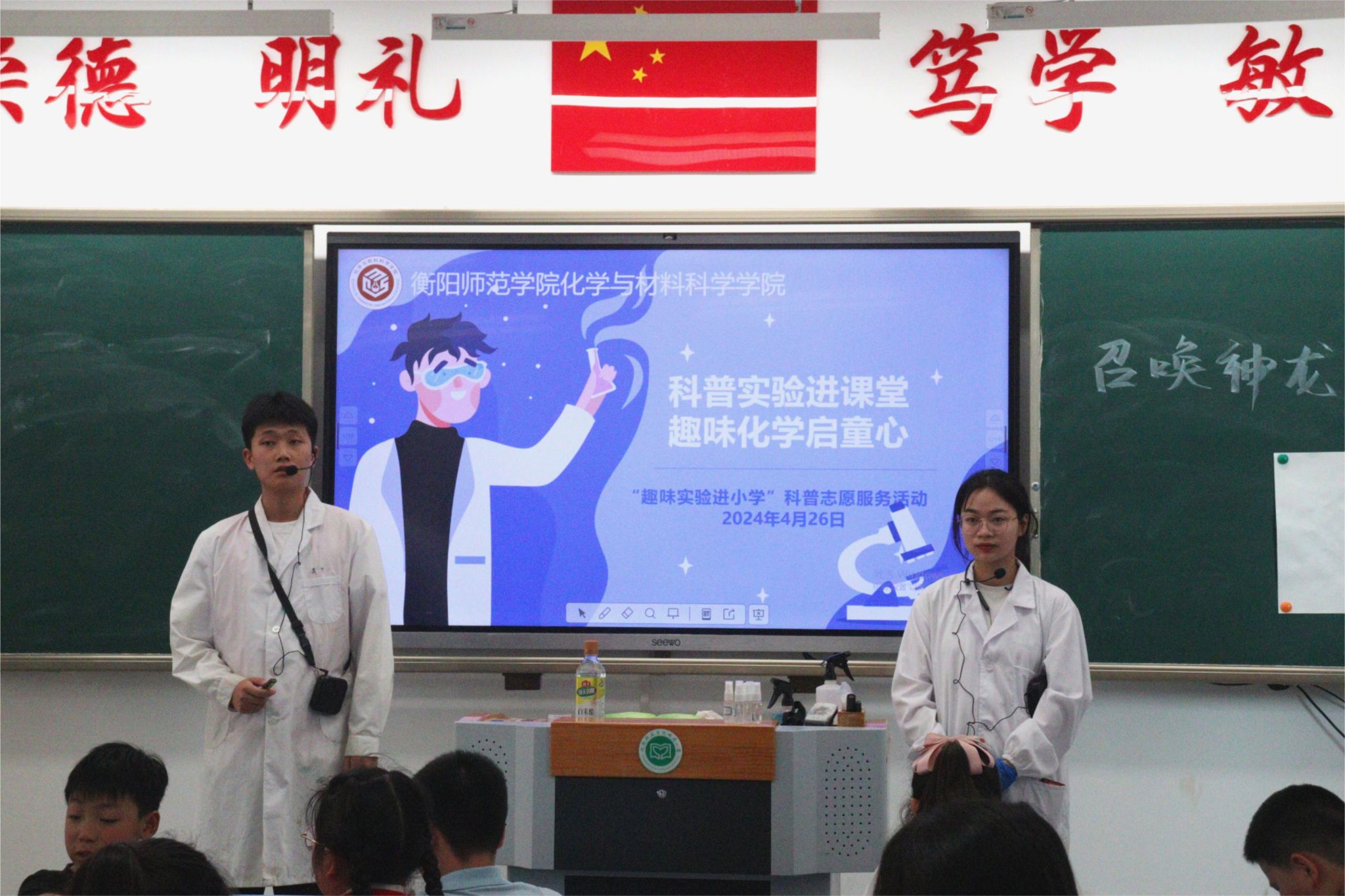 为提升青年学子的社会责任感与使命感,发挥高校在科普知识进小学中的资源优势,激发小员工学习科学的兴趣,4月26日,bevictor伟德一群志愿者走进了伟德官方网站附属小学彭家台社区,为小员工们带来了一堂《召唤神龙——神奇的酸和碱》化学趣味实验课。