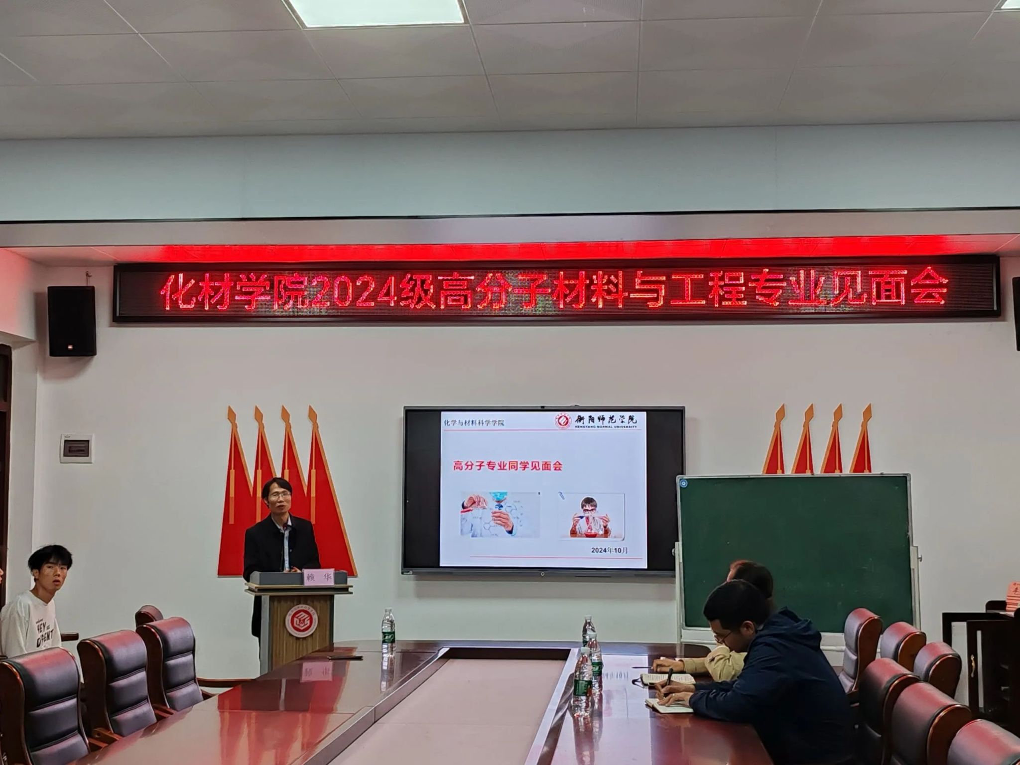 为推动师生之间的交流与互动,助力公司新生更好地融入老员工活,做好老员工涯规划,公司于2024年10月15日晚,在化材楼105会议室举办了高分子材料与工程专业见面会。此次会议由高分子专业负责人赖华老师担任主讲,公司党总支副书记阳曼、2024级辅导员唐波湘老师以及2408班班主任颜川老师应邀出席,2024级高分子专业全体新生到场聆听。