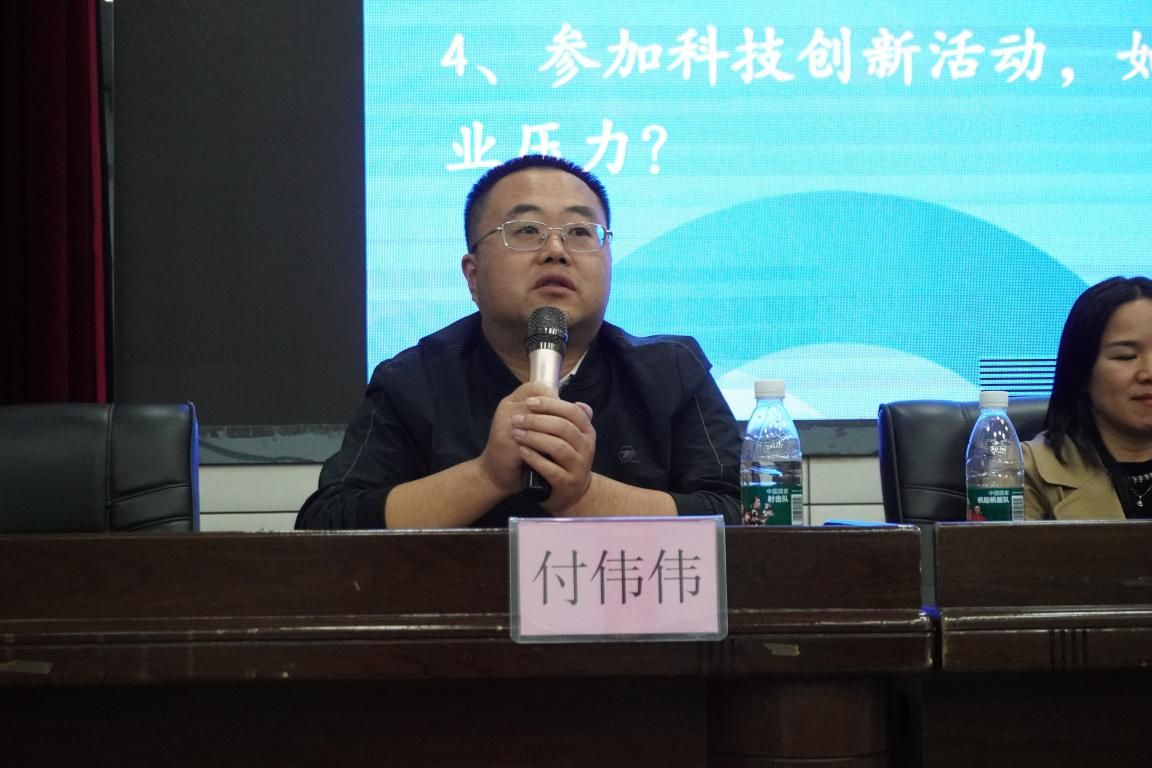 在教师答疑环节中,谭雄文、陈文等数位老师分别就“如何在高强度学业压力下,合理安排时间参与科技创新活动?”以及“大学一年级新生缺乏实验经验,是否可以加入教师实验室开展科研工作?”等问题进行了详尽地解答。老师们表示,员工应该要不断培养科技创新能力,因为这种能力是成为高素质人才的一个核心和灵魂。