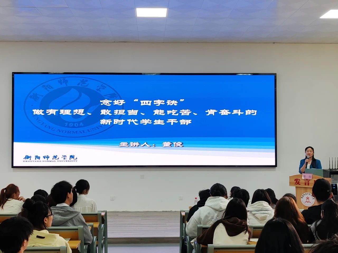 为全面提升员工干部的综合素质,持续强化全院员工干部的协同合作能力和自我管理能力,并充分发挥其在员工群体中的引领示范作用,bevictor伟德于2024年11月10日上午,在西校区学奎楼104教室举办了2024年下学期员工干部培训会暨“百廿荣光 薪火相传”主题演讲比赛决赛。本次会议荣幸邀请到学工部部长董俊担任主讲嘉宾,公司党总支副书记阳曼、学工办主任唐升、辅导员姚尽沙、谢峥以及唐波湘老师亦出席了本次会议,全体员工干部均列席聆听。