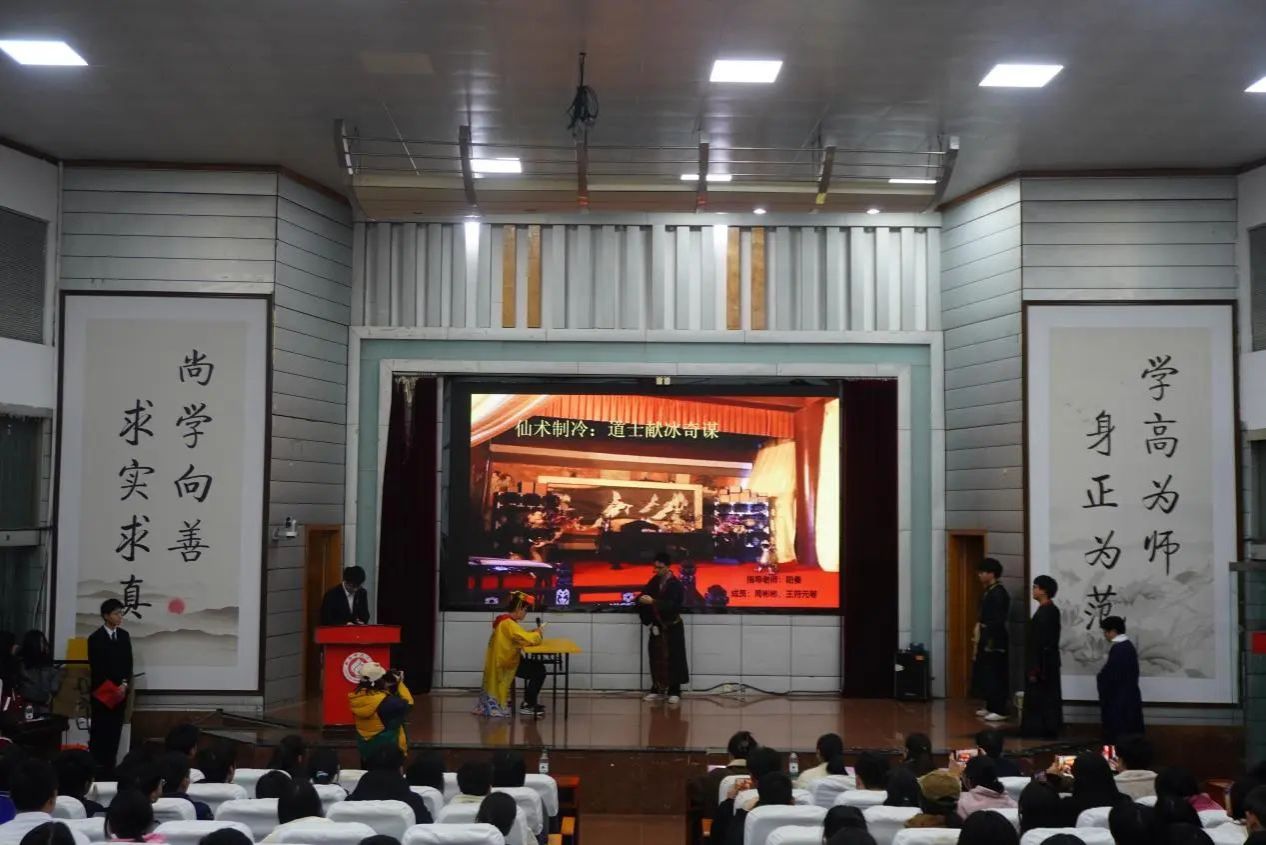 紧接着,后四组的演出同样引人入胜,将比赛氛围推向高潮。其中《洁厕灵与84消毒液的禁忌之恋》从拟人化角度创作幽默剧本,逗得师生捧腹大笑,同时还科普了安全知识。知识性与趣味性兼具,令人称赞。表演结束后,社长罗丹汝介绍了社团活动详情与丰硕成果,从社区服务到知识传播,成果斐然。她还对社团未来提出期望,希望能延续佳绩。李玉林老师从两个角度进行了点评,他阐明了科普工作对于开启公众科学视野和点燃探索热情的重要性;同时,他对参赛队伍不足的地方一一指点,并提出了改进建议。
