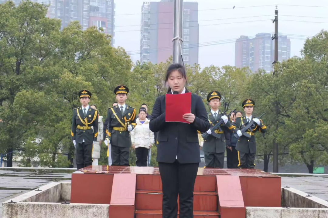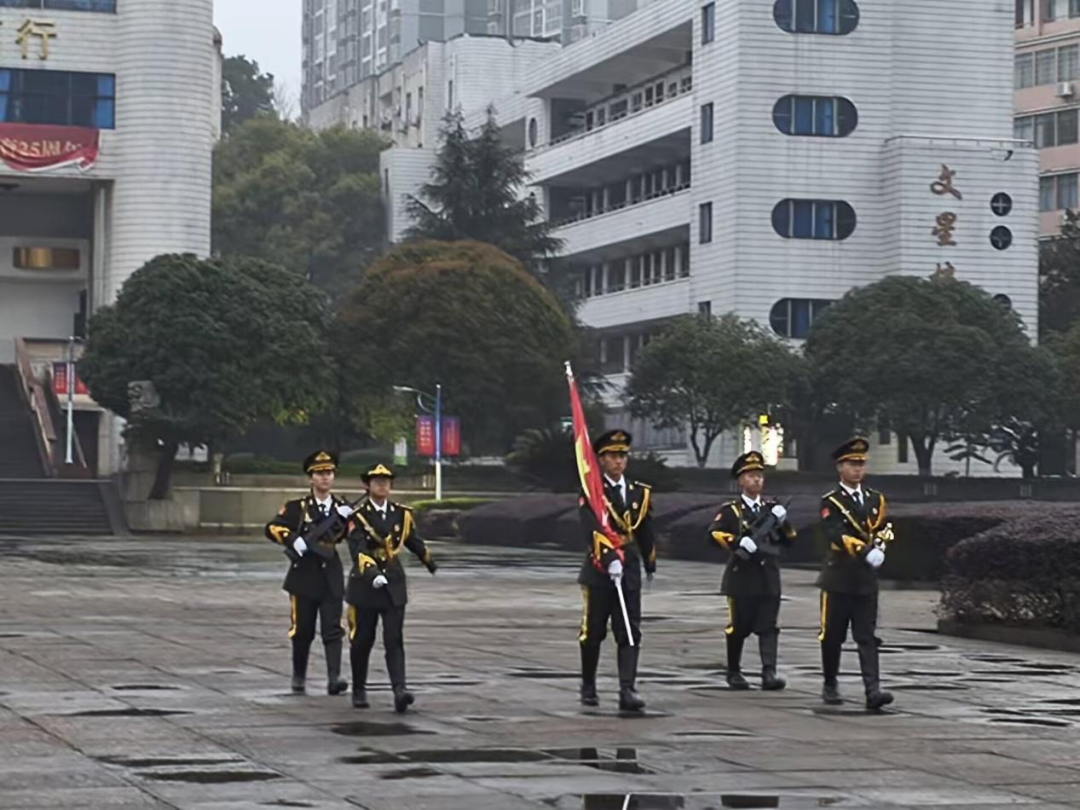 晨光初破晓,国旗护卫队已整装待发,他们以挺拔的军姿、坚定的眼神,守护着国旗的尊严与荣耀。随着“敬旗”口令的响起,护旗方阵以铿锵有力的正步,划破清晨的薄雾,每一步都凝聚着青年学子的热血与忠诚。当《义勇军进行曲》激昂的旋律响起,五星红旗在全体师生的注视下冉冉升起,那一刻,家国情怀在每一个人的心中激荡,凝聚成一股不可阻挡的力量。